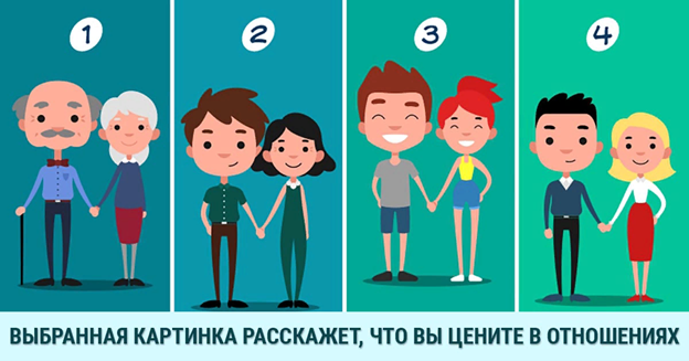 4. Если Вы сделали выбор в пользу этой картинки, то у Вас достаточно простые требования к партнеру. Простые – не значит «плохие». Просто Вы руководствуетесь внутренним голосом, внутренним чувством, и не пытаетесь делать рациональный выбор. В некоторых случаях это может к тому, что со временем вы поймете, что находитесь рядом с абсолютно чужим человеком. Вам стоит избирательно относиться к людям, и хорошенько разобраться в себе, прежде чем начинать строить близкие отношения.