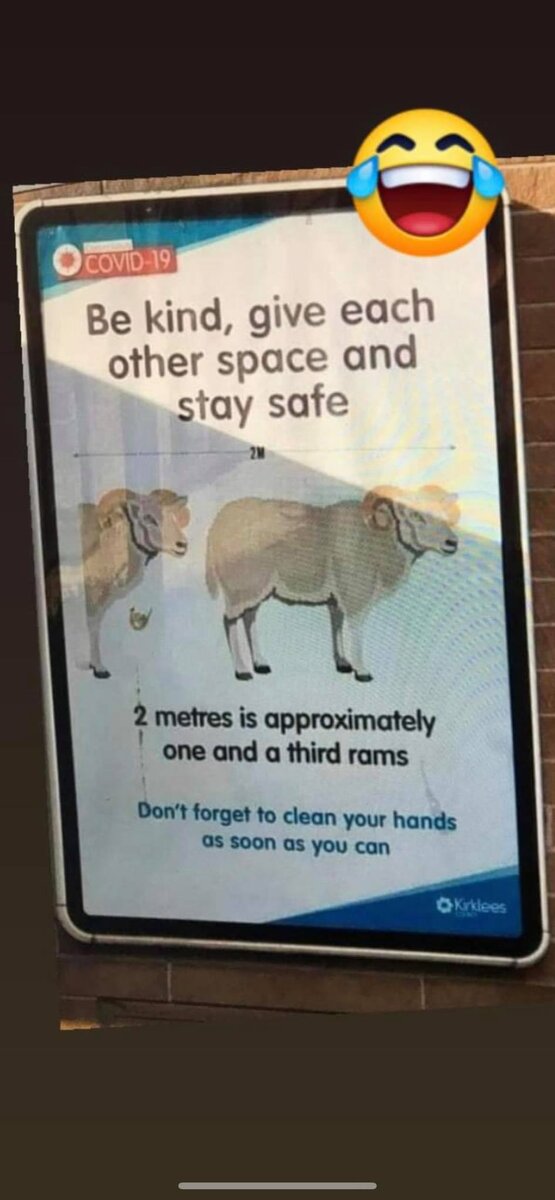 Власти в Британии уже совершенно не скрываясь издеваются. Это в сельской местности в Йоркшире. Ну чтоб даже пейзане поняли. Дистанция в два метра это примерно один и треть барана. Я не знаю, что тут еще сказать, разве что это всё точно для баранов и должно в них измеряться…