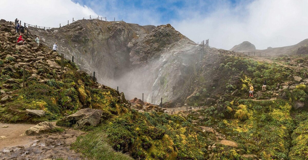 С верхней точки вулкана Суфриер открывается потрясающий вид на цепь давно потухших вулканов, просторы Карибского моря и зеленые долины. Склоны окрестных гор покрыты влажным тропическим лесом.