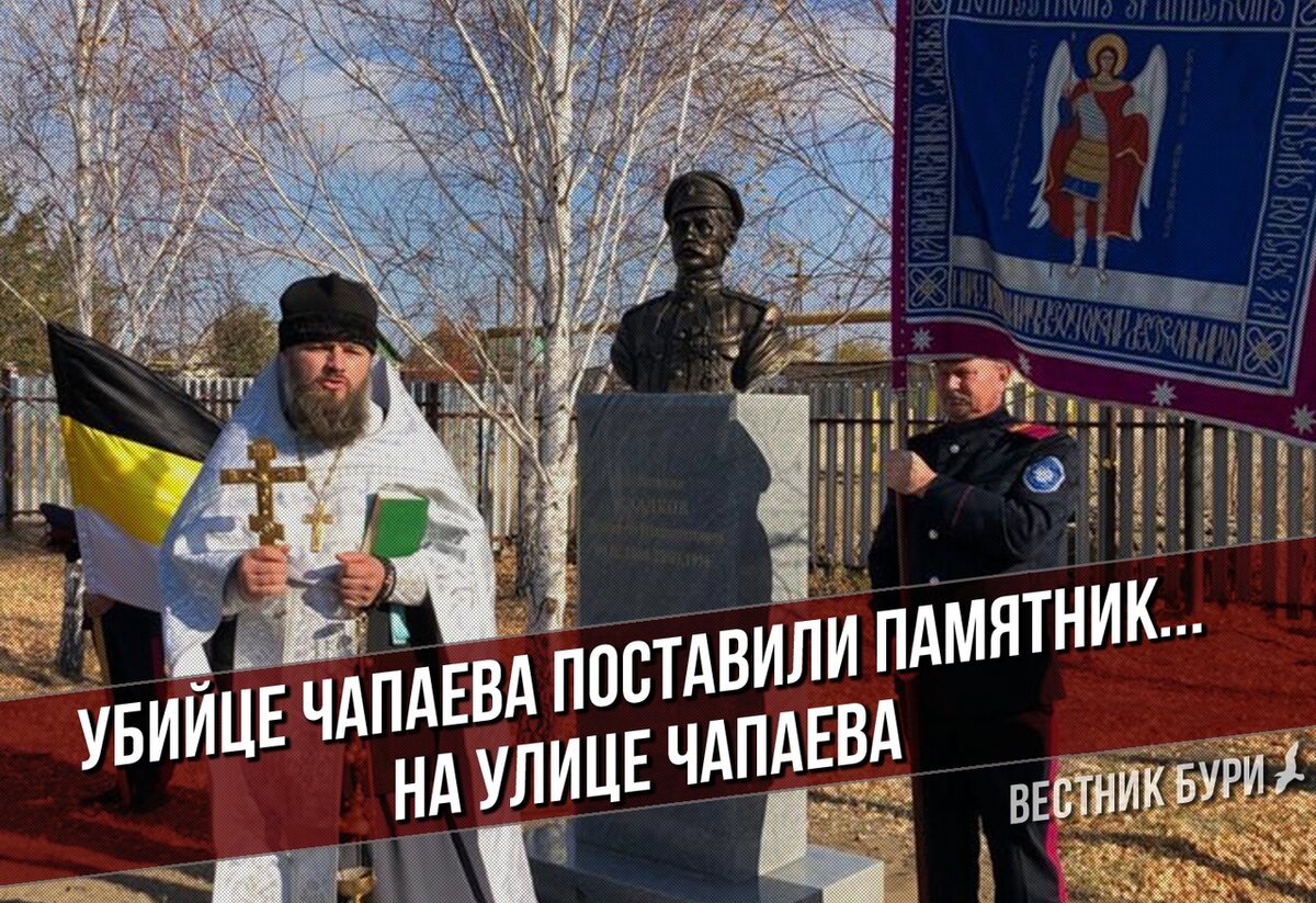 Четыре дня назад в селе Красном Оренбургской области был открыт памятник казачьему полковнику Тимофею Сладкову. Именно под командованием Сладкова белоказаки в Гражданскую войну уничтожили штаб 25-й дивизии вместе с её знаменитым командиром - Василием Чапаевым.
