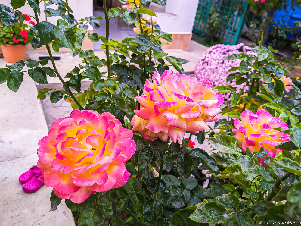 Сейчас такое интересное время, что и розы еще буйно цветут, и хризантемы на самом пике красоты.