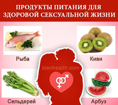 Все мы знаем о важности употребления большого количества фруктов и овощей для здоровья организма. Эти же четыре продукта, помогут обеспечить ещё и здоровую половую жизнь. Необходимо также помнить, что включение в рацион разных, а главное, разноцветных фруктов и овощей крайне полезно для здоровья всего организма в целом.