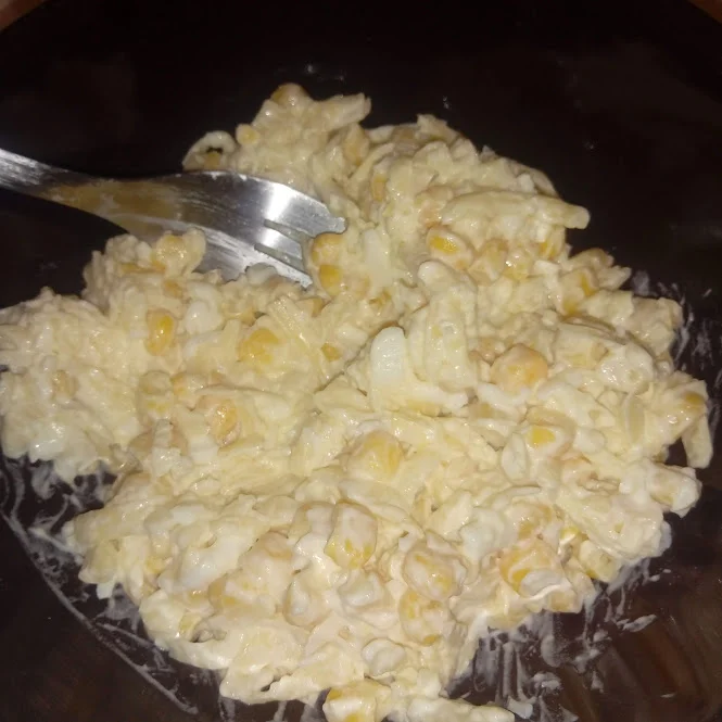 Берем банку кукурузы, два вареных яйца и кусок сыра трем на крупной терке, добавляем зубчик чеснока, натертый на мелкой терке или пропущенный через пресс, заправляем майонезом.