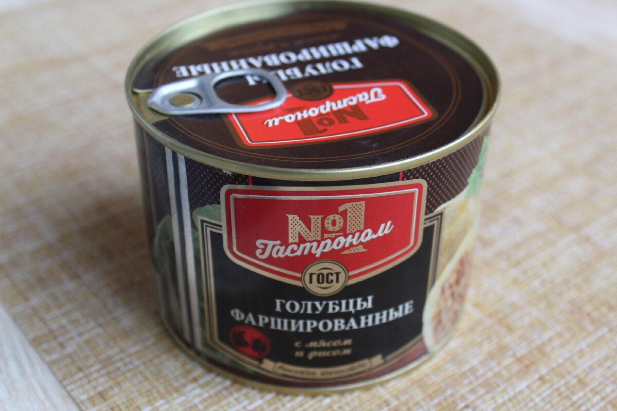 Помимо всяких БПшек и пельменей я прихватил с полки и баночку консервированных голубцов.