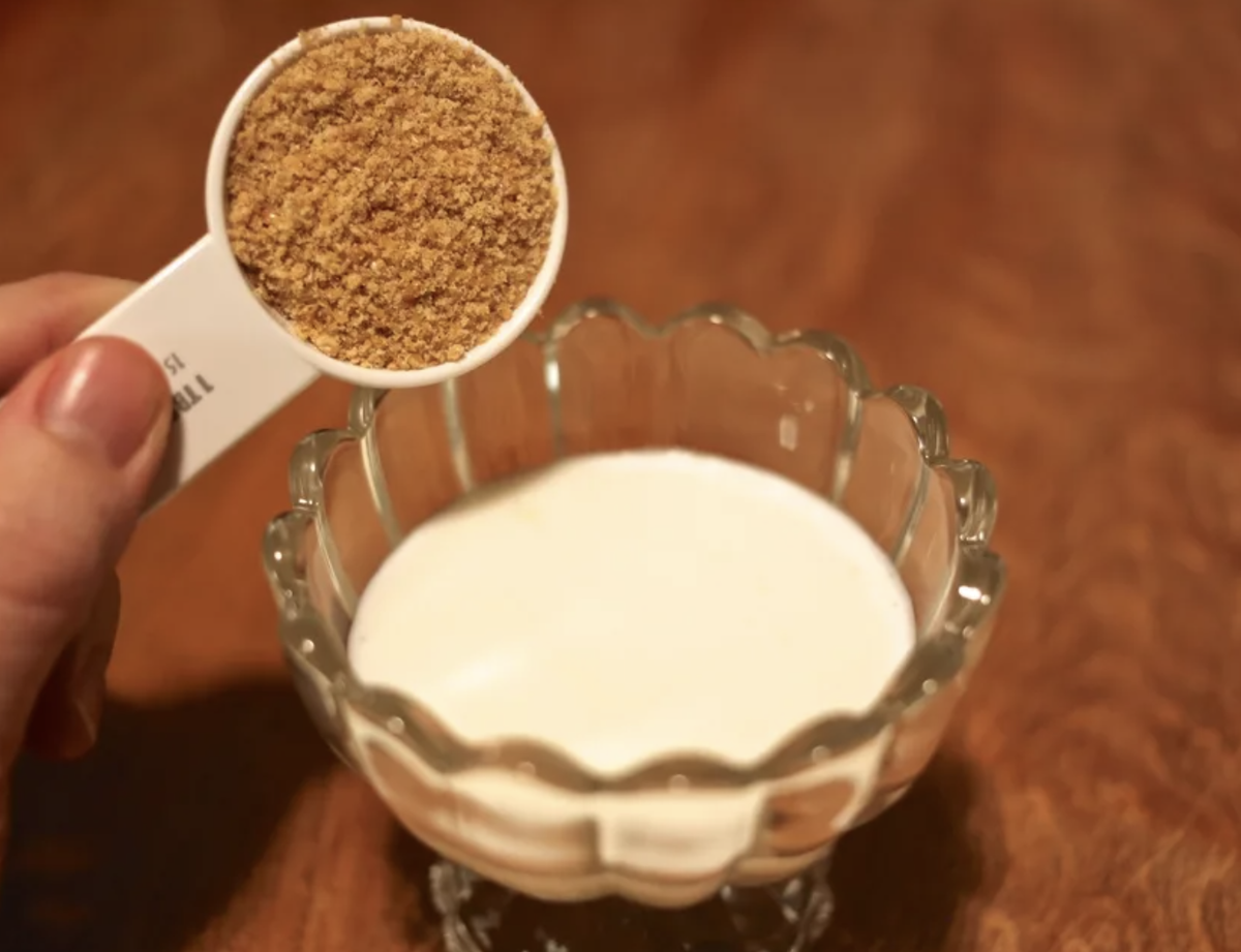 Встаю утром, насыпаю заранее перемолотые семена (1 ст. ложка) в стакан (200 г), перемешиваю и иду заниматься своими делами (чистить зубы, туалет и т.д.). Готовлю коктейль с утра, потому что использую кофемолку для измельчения семян, поэтому особо долго настаивать семена не приходится. Если у вас нет возможности молоть зерна, то залейте их кефиром на ночь, а стакан поставьте в холодильник.