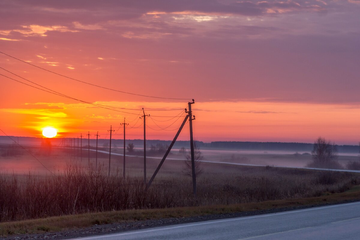 ..ездил с утра пораньше в Октябрьское - в 8 надо было уже на месте находиться, дабы встретиться с монтажниками. Успел, хотя нечеловечески прекрасный рассвет всячески тормозил моё продвижение (плюс неслабый такой туман ещё на разных участках дороги)
