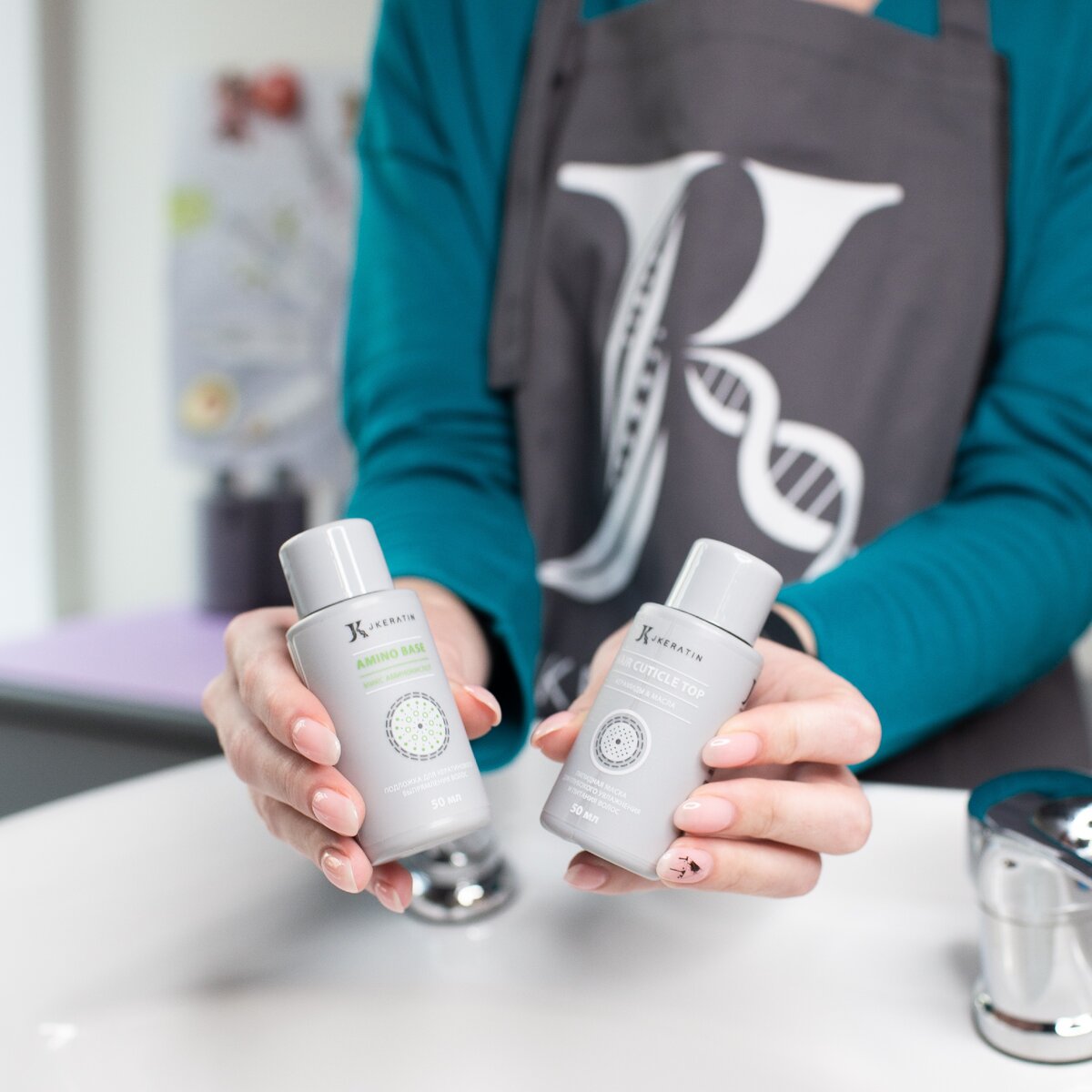 С новыми продуктами от JKeratin вы сможете преобразить любые волосы! В наборе "Лайфхак для кератинщика" представлены аминокислотная подложка для кератинового выпрямления Amino Base и липидная маска для глубокого увлажнения и питания волос Hair Cuticle Top.
