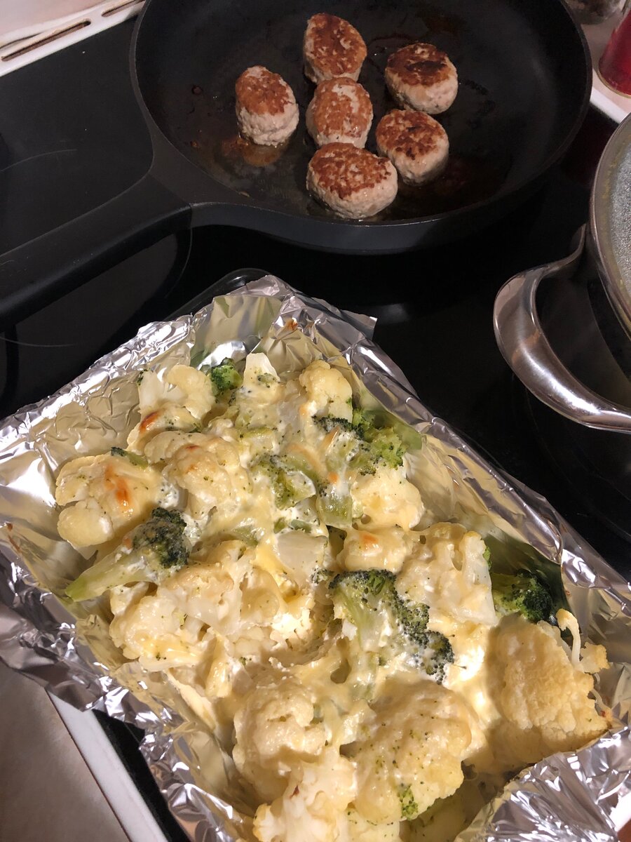Этой осенью мой фаворит - цветная капуста. Делюсь двумя рецептами-импровизациями, которые отлично подойдут тем, кто следит за количеством углеводов. Запечённая цветная капуста с брокколи. Отварить цветную капусту и брокколи в кипящей воде до полуготовности. Смешать сметану, сырое яйцо и тертый сыр. Капусту выложить в форму и залить смесью из сметаны. Запекать в разогретой до 180 градусов духовке 20 минут. Салат с запеченными овощами и адыгейским сыром. Ваши любимые овощи нарезать, полить оливковым маслом, добавить соль, красный перец и паприку. Смазать хорошенько все овощи. Выложить на фольгу и запекать в духовке 45 минут при 200 градусах. Теплые овощи выложить на салатные листья и посыпать кусочками адыгейского сыра. Добавить оливковое масло и соль. Очень рекомендую попробовать такие тёплые осенние рецепты.