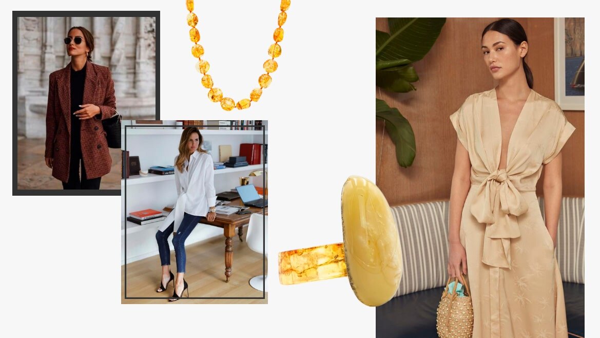 - В офисных образах янтарь станет отличным акцентом, если совместить его с однотонными светлыми рубашками.