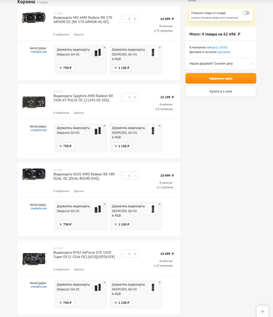 В те же 14 500 обойдётся и GTX 1650 Super, несмотря на то, что она гораздо новее и потенциально – быстрее RX 570. Однако примечательно, что нижняя планка цены на этот ГПУ - 13 600 рублей. Да, это будут максимально бюджетные версии с одним вентилятором и максимально простыми радиаторами, но всё же. Верхняя планка, впрочем – те же 17 тысяч, что просят за дорогие версии RX 570.