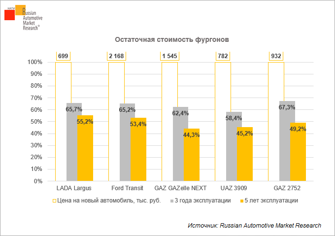 Рейтинг самых продаваемых в России LCV в кузове фургон возглавляют: LADA Largus, Ford Transit, GAZ GAZelle NEXT, UAZ 3909 и GAZ 2752.