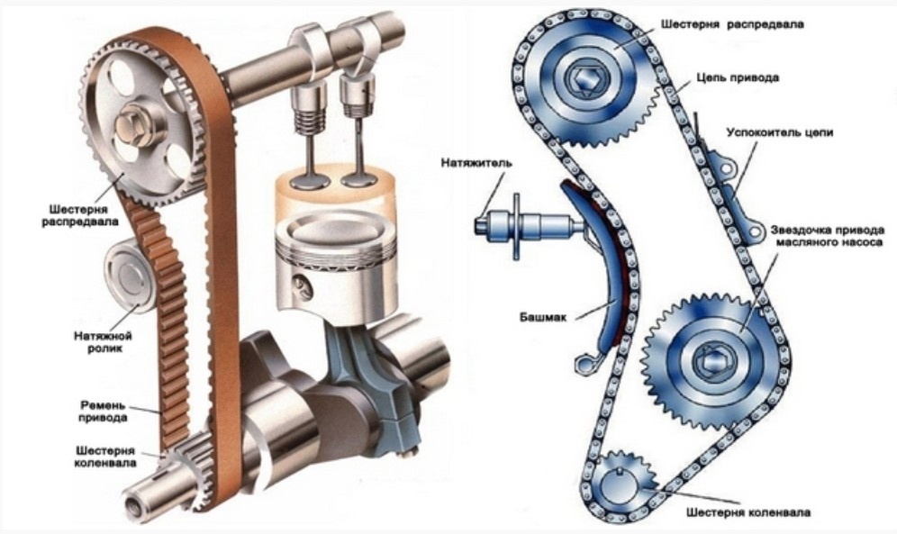 Газораспределительные механизмы различаются типом привода, идущего от коленвала. Он может быть цепным и ременным.