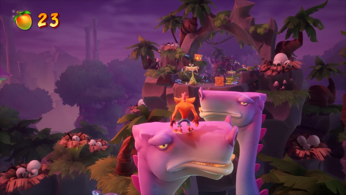 Однако вы сможете насладиться в новом Crash Bandicoot не только игровым процессом, но и визуальным оформлением. Большинство уровней имеют свой неповторимый стиль. В одном из миров Крэш участвует в мексиканском карнавале в честь Дня мертвых. Во время путешествия главный герой прыгает на барабанах и клавишных, становясь непосредственным участником праздничного оркестра. Кроме того, сами локации стали значительно больше, что очень затрудняет поиск спрятанных кристаллов с первого раза, и вам приходится постоянно возвращаться в миры, которые вы уже изучили.
