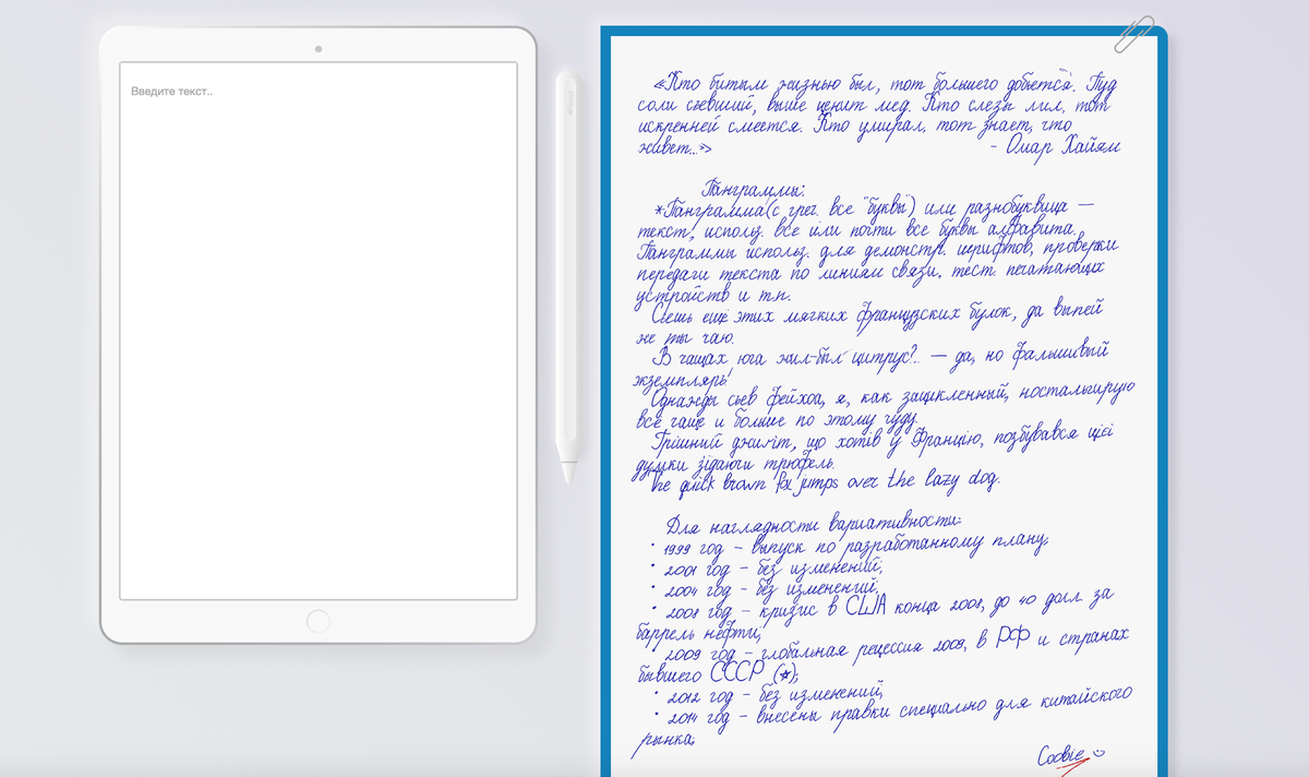 После этого нажимаем на кнопку "Перевести в рукопись" и ждем загрузку примерно 1-3 секунды. Вуаля, рукописный текст готов!