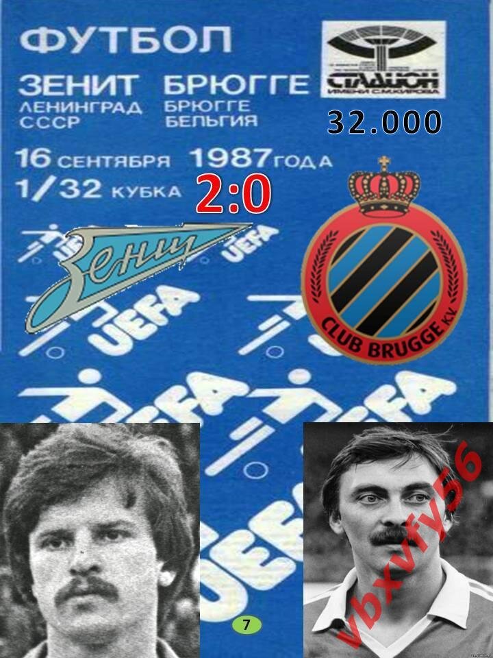 Первое противостояние состоялось в Кубке УЕФА сезона 1987/88. Соперником в 1/32 финала был все тот же "Брюгге" .Первый матч 16 сентября на стадионе им.Кирова, ленинградцы выиграли со счетом 2:0,голы забили Юрий Желудков,и Борис Чухлов. Во ответной игре победу с разгромным счетом 5:0,одержал бельгийский клуб. Клуб с берегов Невы покинул турнир.