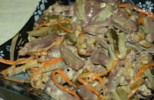 1. Куриное сердечко промываем, срезать сосуды. Заливаем горячей водой и варим 40 минут.
