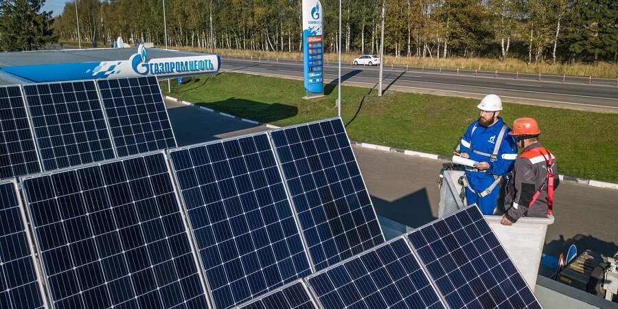 "Газпром нефть" запустила свою первую заправочную станцию на солнечных батареях В Ярославской области. Солнечная электростанция мощностью 5 кВт обеспечивает основной источник электроэнергии в дневное время и может обеспечить до пяти процентов потребления энергии заправочной станцией каждый год.