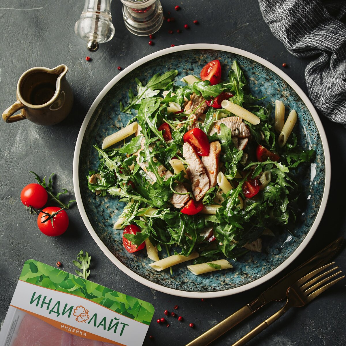 Салат с пастой и грудкой индейки