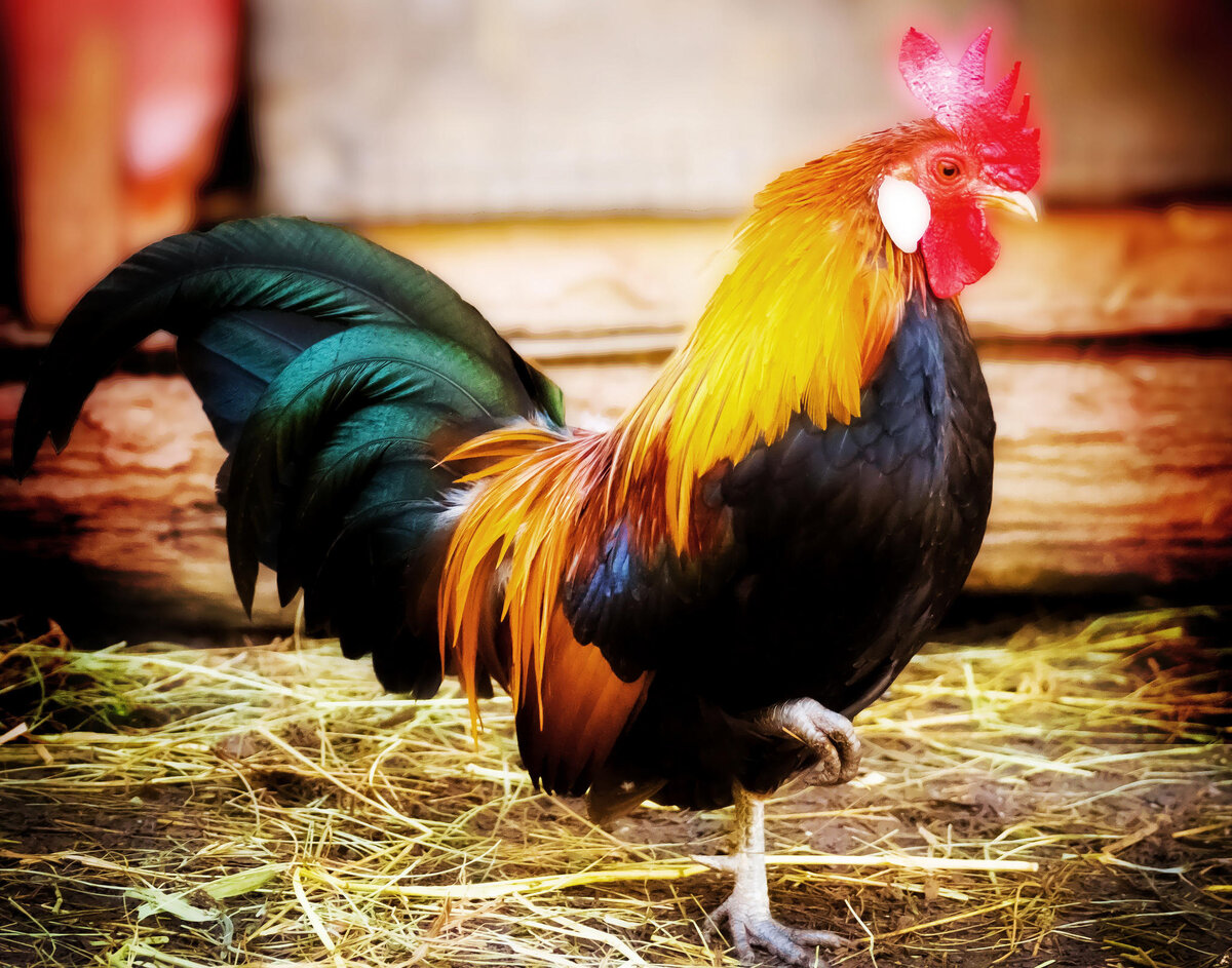 Хоть и с трудом, но он взлетел под крышу сарая, где спокойно отдохнул, никого не боясь. И к вечеру, когда Хозяйка пришла кормить своих несушек дымящимся в ведре распаренным вкуснейшим зерном, он слетел вниз и важно вошел с ней в сарай. Конечно, Хозяйка увидела новую птицу. Похожего красавца ни у кого не было, поэтому она шире раскрыла двери: «Милости просим в наше куриное общество. Нам, такие, нужны».