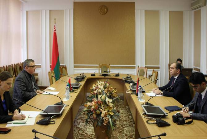 Чрезвычайный и полномочный посол Республики Армения в Республике Беларусь Армен Гевондян 22 октября провел встречу с председателем Постоянной комиссии Палаты представителей Национального Собрания Республики Беларусь по правам человека, национальным отношениям и средствам массовой информации Геннадием Давыдько.