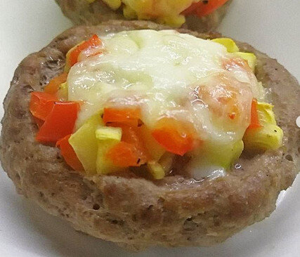 Формируем шарики, делаем углубления, как на фото, внутрь кладем начинку, сверху моцареллу и в духовку на полчаса при 200 градусах.