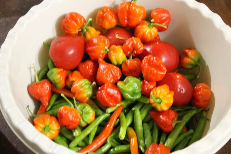 У нас в старом доме еще с десяток-полтора перчин на одном растении доспевает, я с улицы перенес уже месяц как примерно этот кустик. Это самый острый наш перец и самый ароматный, пахнущий не то экзотическим фруктами, не то приятным одеколоном) Буду из этих остатков еще немного конфитюра конфитюрить.