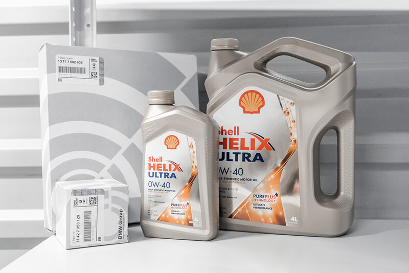 Залили новое моторное масло Shell Helix Ultra, предназначенное для производительных моторов и подходящее для данной модели BMW.