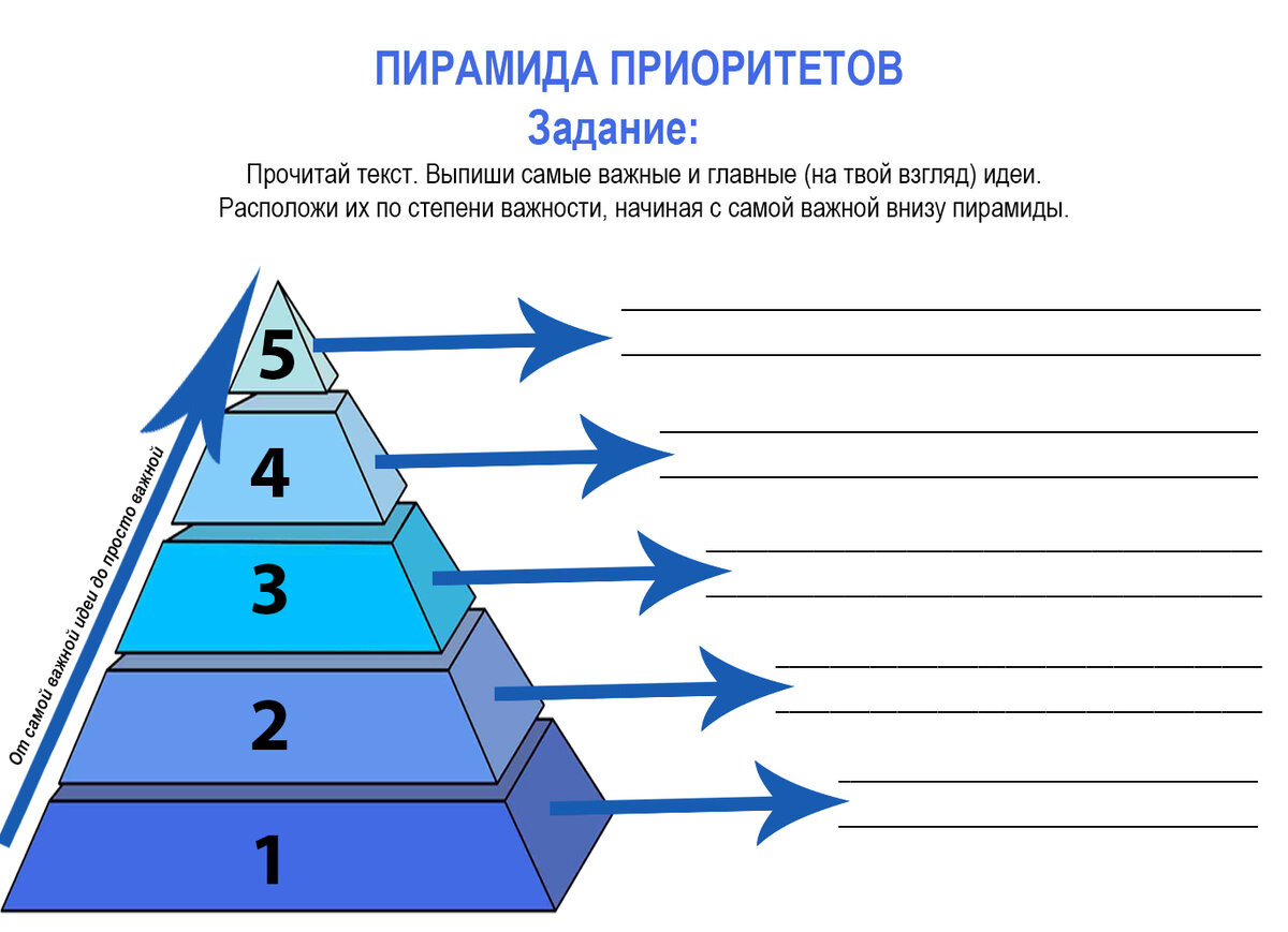В обучении есть очень интересный приём, который называется "пирамида приоритетов". Его чаще всего используют для закрепления или повторения пройденного материала.