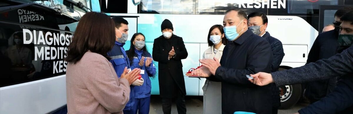 Заместитель Премьер-Министра РК Ералы Тугжанов вручил 24 передвижных медицинских комплекса отечественного производства работникам районных больниц.