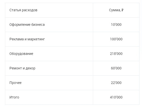 Вложения в этот бизнес по самым минимальным подсчетам начинаются с 410 тысяч рублей. Окупит проект себя через 5 месяцев при ежемесячной прибыли в 100 тысяч рублей.