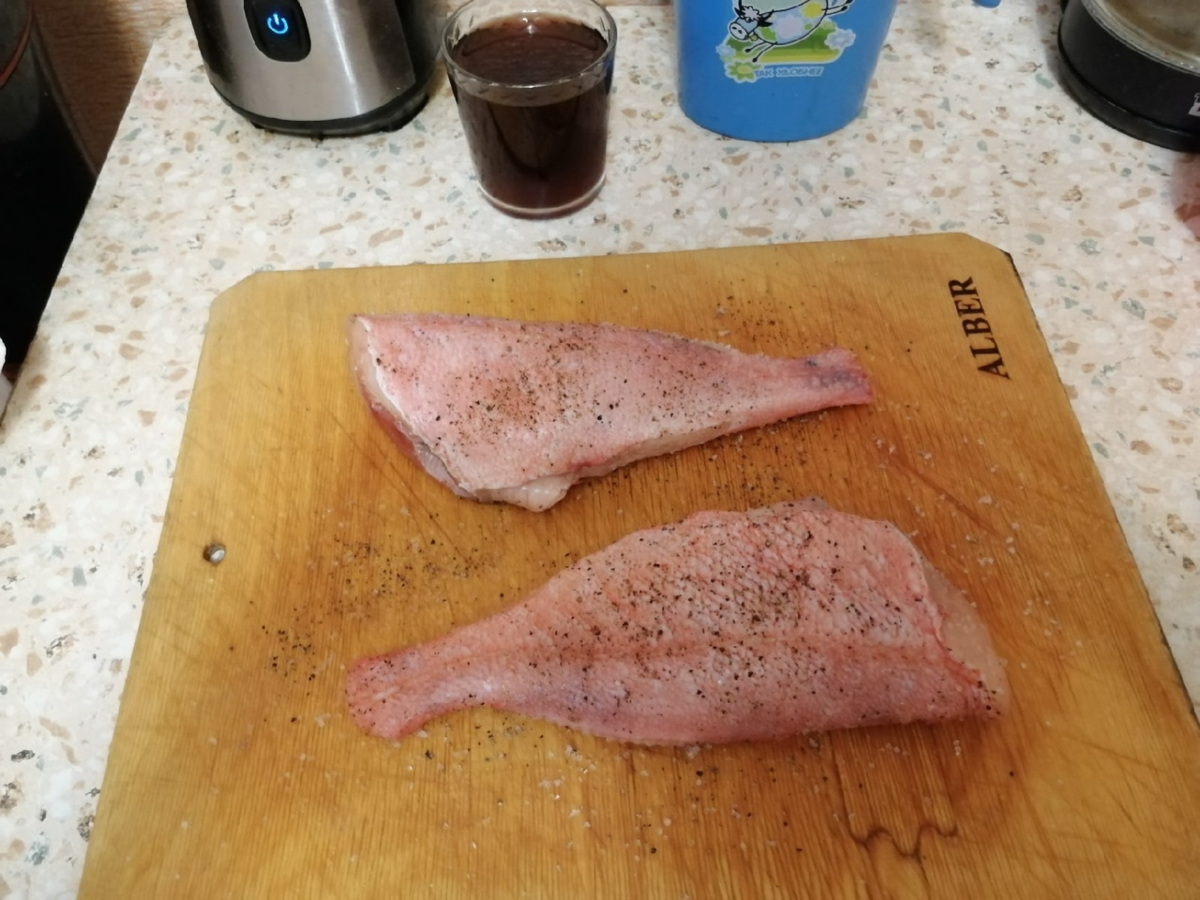 1. Окуня почистить,обрезать плавники натереть солью и посыпать перцем.