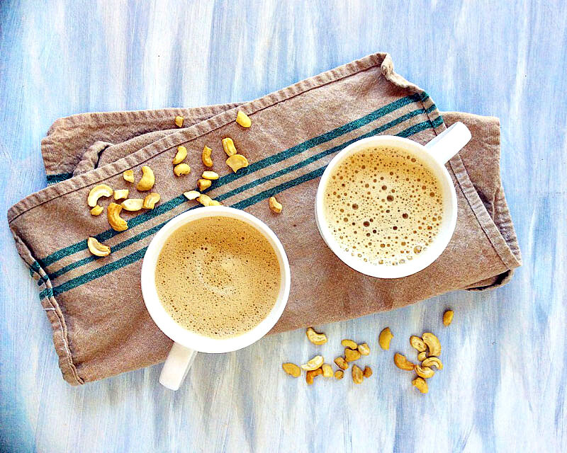 Молоко кешью хранится не слишком долго, его желательно употребить в ближайшие 2 дня. 200 г сырых кешью замачиваем на 2-4 часа (чем больше, тем лучше), затем промываем. Перекладываем в чашу блендера и добавляем 4 стакана фильтрованной воды. Взбиваем до полной однородности. В этом молоке сохраняются не только все полезные вещества и микроэлементы, оно еще и очень приятное на вкус, а с кофе