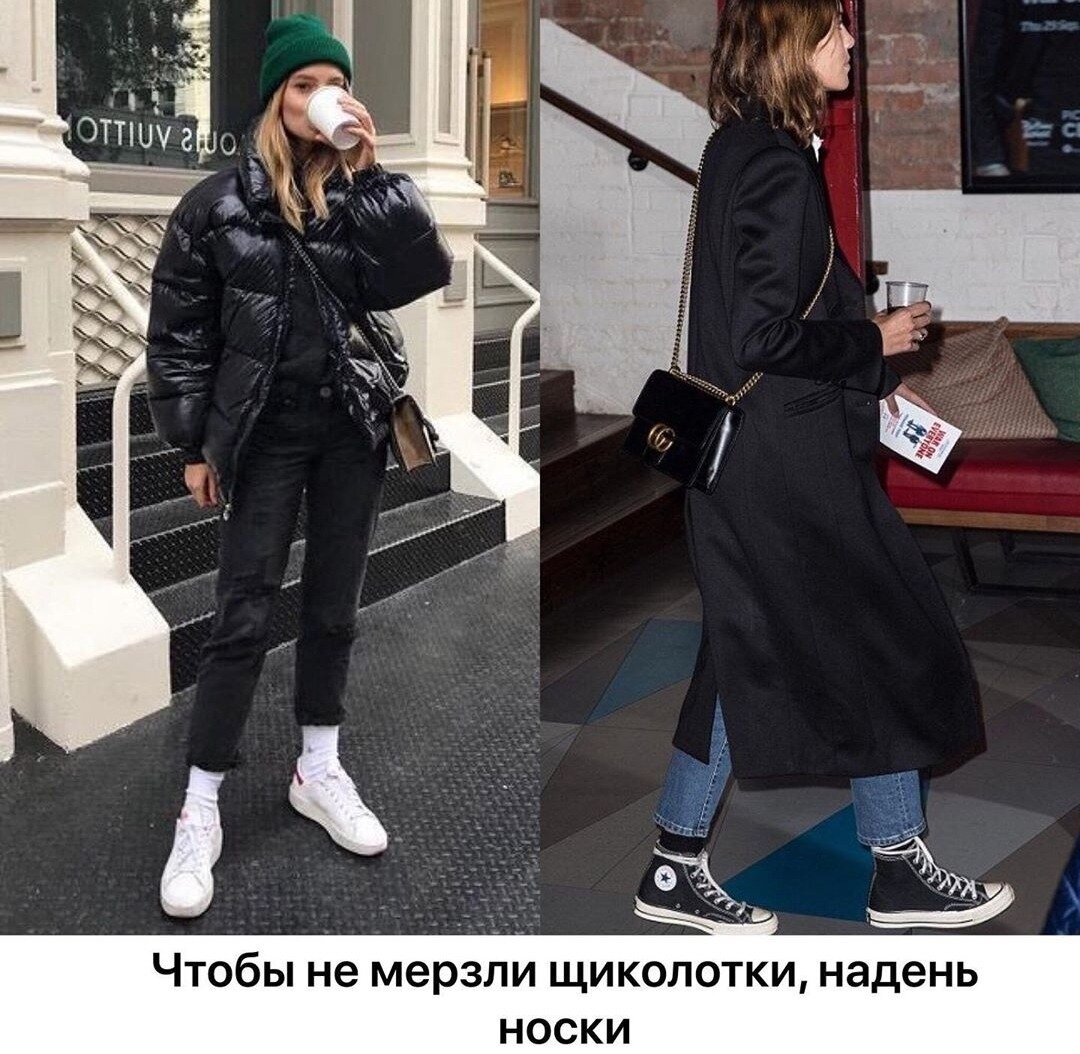 ♡не надо демонстрировать голые щиколотки,когда холодно.оставь это до весны. утепляй ноги носками- они могут быть черные, в цвет обуви,брюк и даже как цветной акцент.