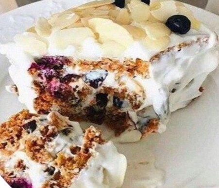 5⃣ Смешиваем все ингредиенты для крема, смазываем каждый корж и бока пирожного, украшаем по желанию (молотые орешки, ягоды, миндальные лепестки).