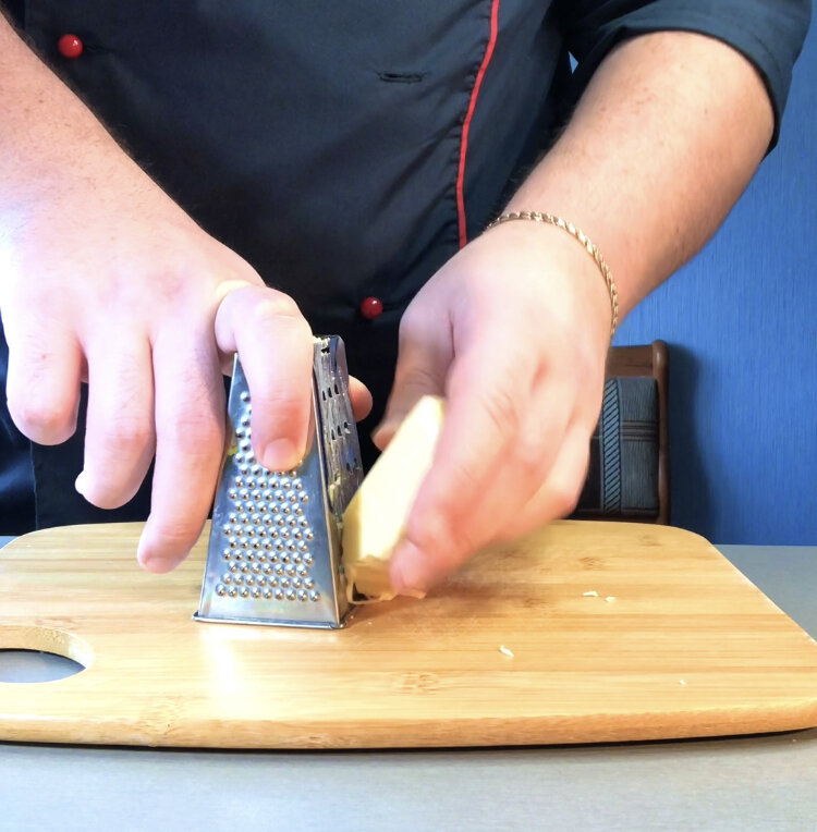 Берём Сыр ,который хорошо плавится, у меня Гауда. Натираем на терке, лучше на мелкой