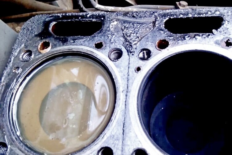 Затекание жидкости в камеры сгорания несет в себе большую опасность. Блок цилиндров, поршневая группа и другие элементы ДВС механически повреждаются. Деформация ведет к трещинам и расколам. Детали испытывают критические нагрузки.