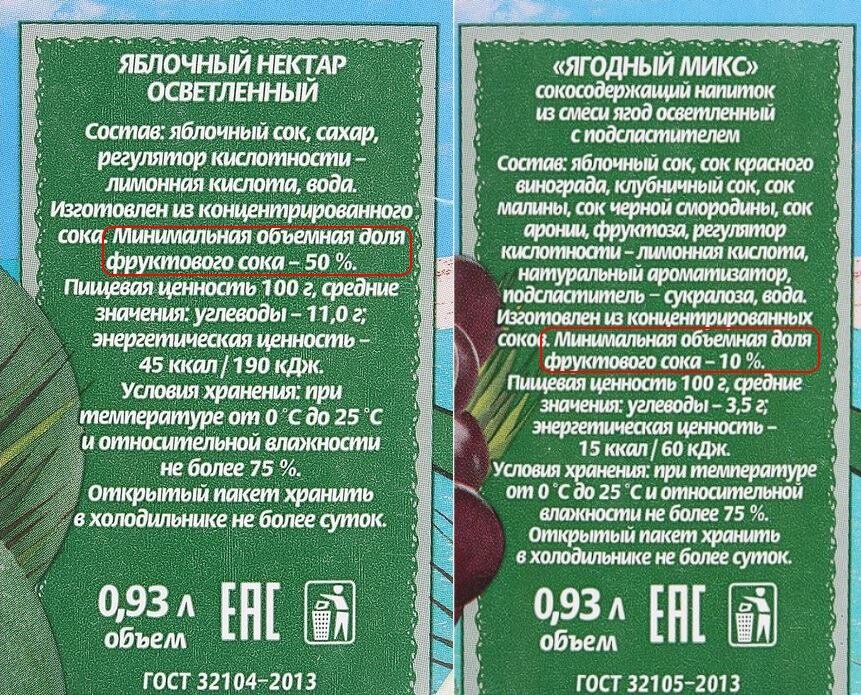 Если вы решили купить в магазине не сок, а нектар обязательно запомните эти цифры.