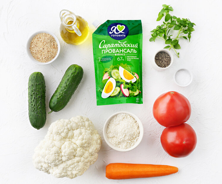 Цветная капуста — источник витаминов и минералов. Обыграйте овощ, приготовив стейки с добавлением помидоров, огурцов, морковки и сыра.