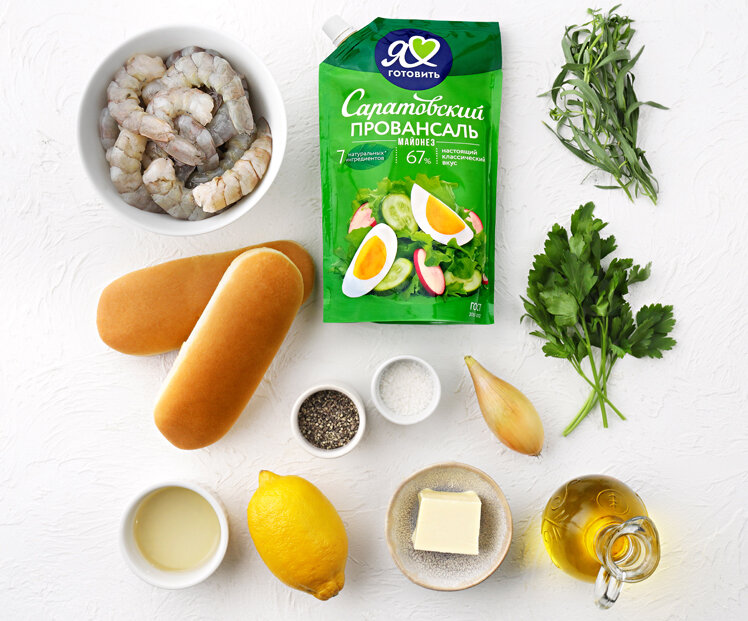 4. Булочки разрежьте пополам, но не до конца – раскройте, как книгу. По желанию со стороны разреза намажьте булочки тонким слоем сливочного масла. Поджарьте в сковороде на среднем огне до золотистого цвета с обеих сторон, примерно по 1,5–2 мин. с каждой стороны. Разложите креветки по булочкам и посыпьте зеленью. Сразу подавайте.