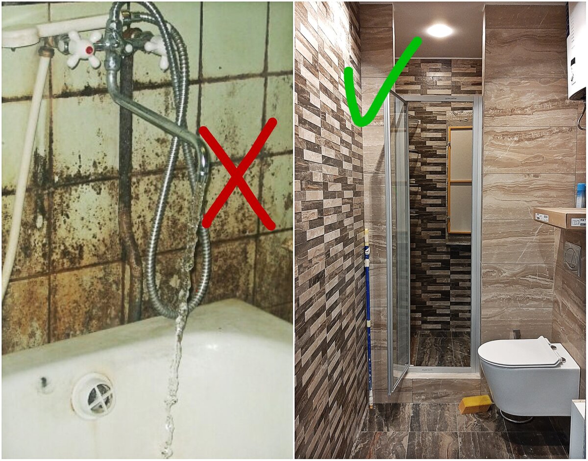 Гидроизоляцию необходимо заводить на стены (не менее 10 см от пола). Также важно не забыть обработать поверхности противогрибковым составом, чтобы не допустить появления плесени.