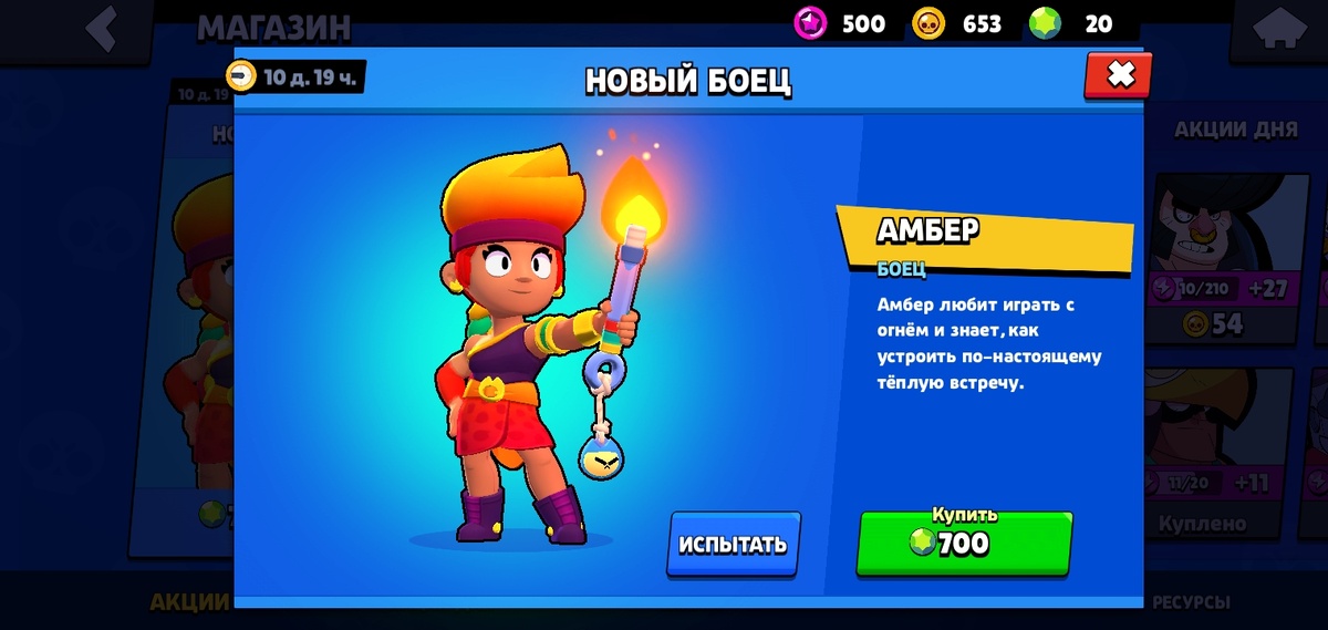 В бравл старсе вышал новый боец Амбер у неё простой удар, она пускает огонь, а супер сила у неё она плескает на землю бензин, и она легендарный боец.
