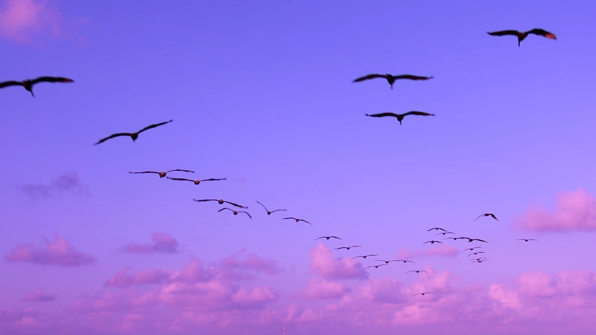 Перелет происходил очень близко к нам, такое редко можно увидеть, потому что птицы зачастую летают высоко и далеко от людей. Их была целая стая. Их черный издалека цвет разбавлял эту картину из теплых и расплывчатых тонов неба, мы так восторженно смотрели на них, прям как дети, а они просто удалялись вдаль.