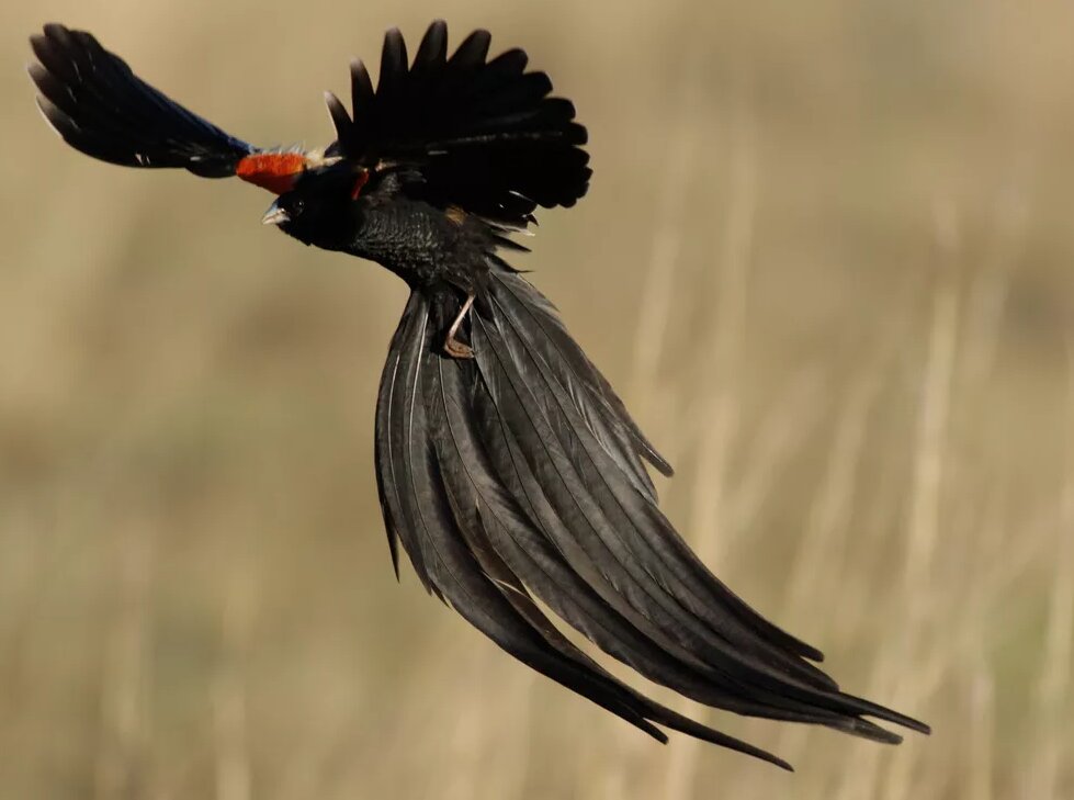 Самцы этого африканского вида птиц прилагают дополнительные усилия чтобы хорошо выглядеть в период размножения. От шести до восьми их хвостовых перьев вырастают более чем на 50 см, примерно в три раза больше длины тела птицы. Исследователи обнаружили, что самки предпочитают самцов с более длинными хвостами, поэтому чем длиннее хвост, тем более успешным будет самец в установлении любовной связи.