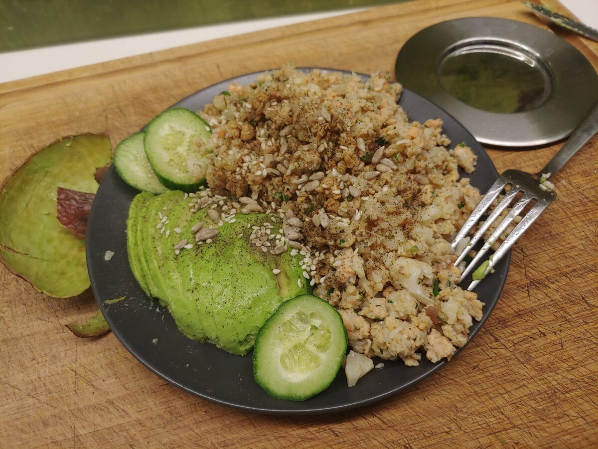 Сегодня у нас ризотто с форелью. Но не спешите запустить в меня переспевшим авокадо за не к месту поставленный хештег #кето, поскольку рис этот - из цветной капусты.