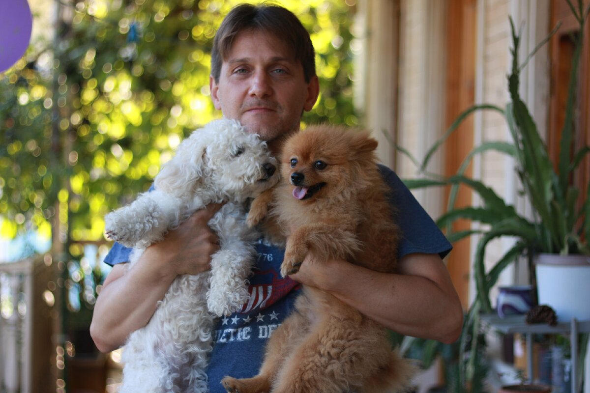 Тогда папа взял собачек себе и стал о них заботиться, так как очень любит животных. Днём они бегают по двору, но спят только в доме,
