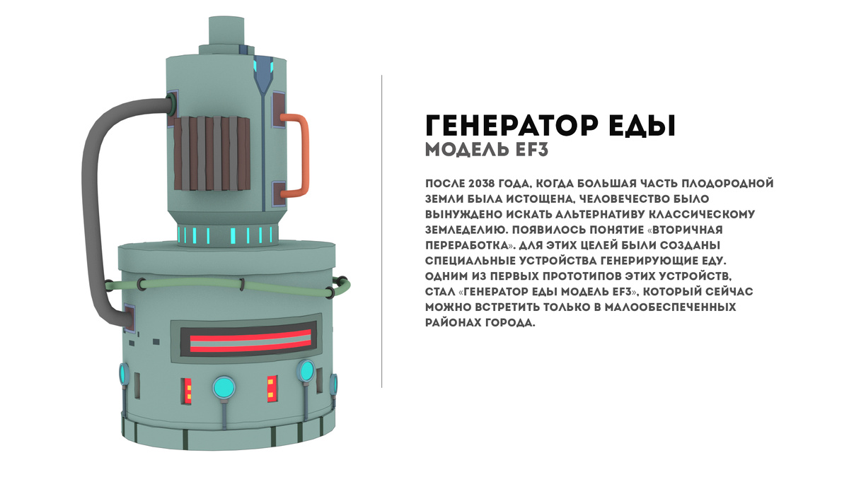 Я решил пойти по пути от «идеи к наименованию». Т.е. решил сначала понять: «чем корпорация занимается?» и от этого строить ее образ. Если в моём мульте сейчас 2083 год, а это мир будущего, то «корпорация зла» должна контролировать жизненно важный ресурс. Ресурс, от которого зависят все. А что это может быть, если не еда? И не просто еда, выращенная на полях, а произведенная в лабораториях. Потому что в моем, 2083 году, по-другому быть не может.