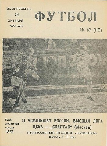 24 октября 1993 года на стадионе «Лужники» в рамках очередного тура чемпионата России состоялось московское дерби – ЦСКА в качестве хозяина принимал «Спартак».