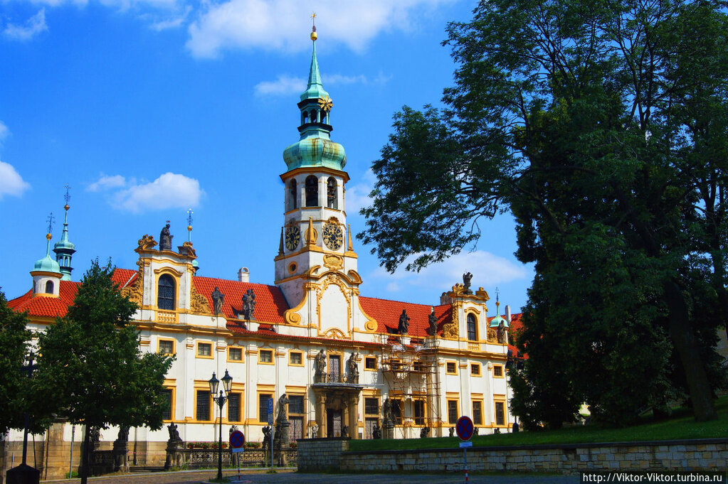 Набожная и благочестивая аристократка Катержина из знатного чешского рода Лобковицев беззаветно верила в легенду о переносе ангелами Святой Хижины Девы Марии из Назарета в итальянское местечко Лорето. Искренняя католичка, мечтающая о появлении подобной святыни и в Праге, выделила на строительство деньги, отдала свои земли, наняла гениальных архитекторов чешского барокко отца и сына Динценхоферов и даже привезла несколько кирпичей и балок от Святой Хижины из Италии. Построенная в 1631 году пражская Лорета стала центром паломничества и со временем превратилась в целый комплекс строений, включающий в себя Святую Хижину, костел Рождества Господня, монастырь и Лоретанскую сокровищницу.
