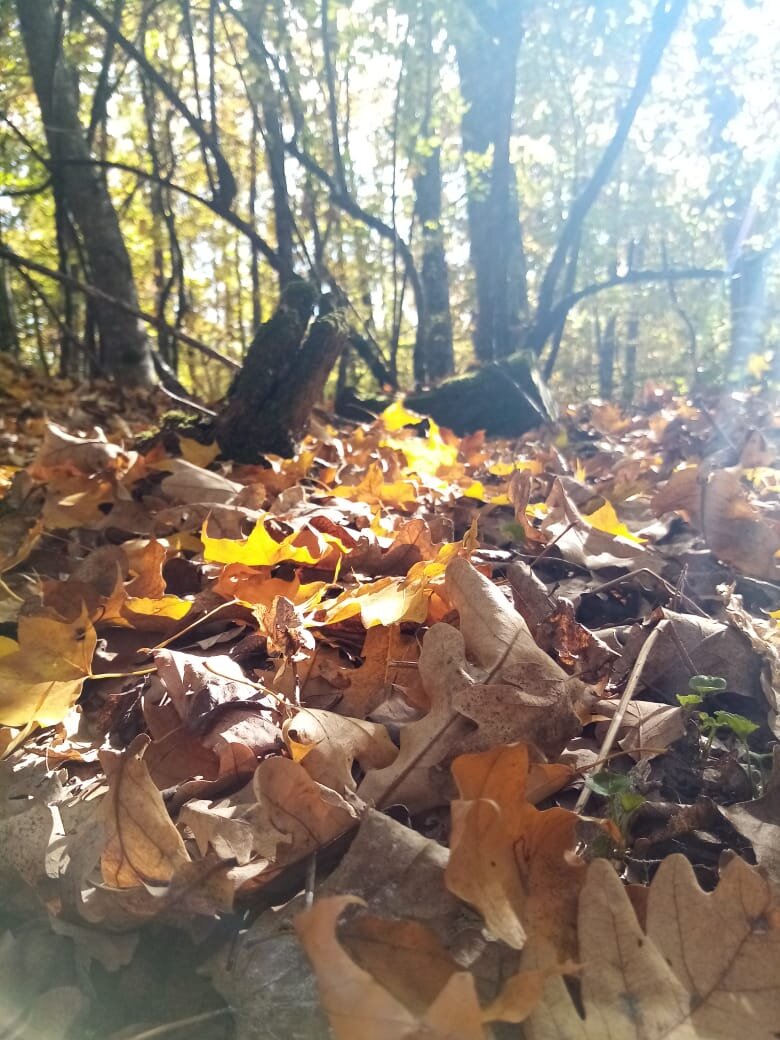 В лесу творится что-то странное. Кизил весь в недозревших, но высохших ягодах стоит. Листья дубов... Это что-то! Никогда не видела дубовые листья такого размера
