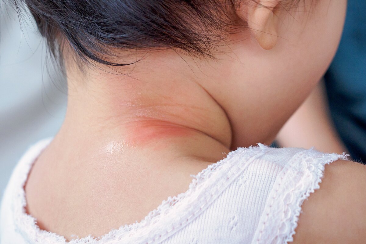 - Аллергическая реакция на укусы насекомых – она редко бывает у грудничков. Место укуса может опухнуть, малышу будет дискомфортно, так как оно станет чесаться.